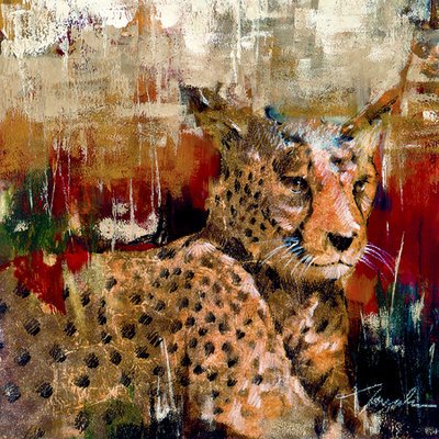 Affiche: 'Cheetah' par Liz Jardine - Taille de l'image 23 cm L x 23 cm H