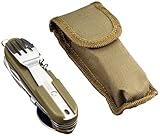 ✚✚✚ Tarrerias Bonjean 440620 Couteau de Poche Pliant BIVOUAC Acier inox + Lampe LED + Housse Kaki