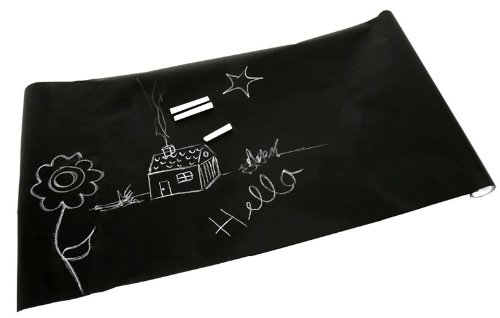 #Ce tableau auto-adhésif s'adapte à toutes les pièces de la maison ! Il suffit de le coller sur une paroi lisse dans la chambre d'enfant, la cuisine ou le garage, pour pouvoir ensuite y dessiner, inscrire des notes ou faire des croquis à l'aide de la craie. 3 bâtons de craie inclus.